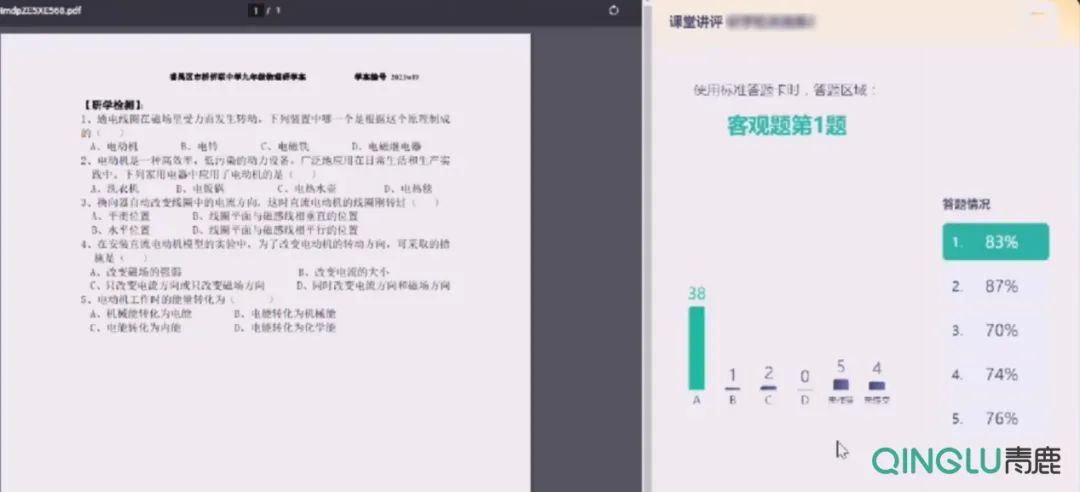 在一堂信息技術(shù)賦能教學(xué)的物理課上,老師應(yīng)用青鹿智慧紙筆系統(tǒng),完成了一次高效、全面掌握學(xué)生作答情況的習(xí)題集中訓(xùn)練。