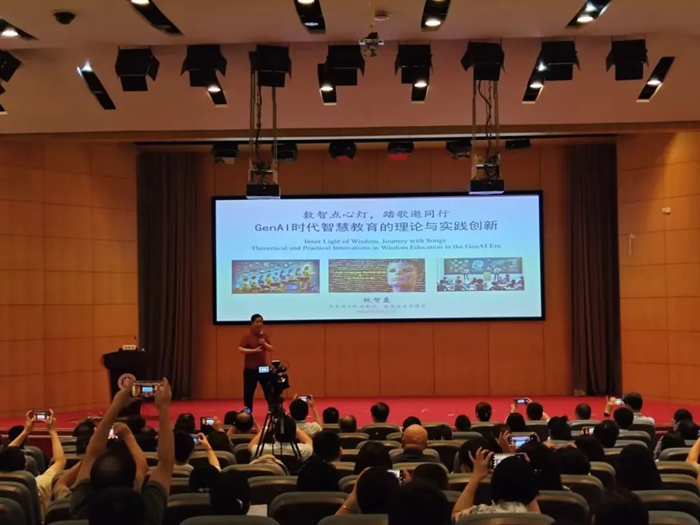 華東師范大學(xué)終身教授、教育技術(shù)學(xué)博士生導(dǎo)師祝智庭圍繞“GenAl時代智慧教育的理論與實踐創(chuàng)新”作主旨報告,他表示,智慧教育是通過人機(jī)協(xié)同作用以創(chuàng)變教學(xué)過程與促進(jìn)學(xué)習(xí)者美好發(fā)展的未來教育范式。教育智慧是智慧教育的基石,它通過數(shù)據(jù)智慧提供精準(zhǔn)的學(xué)習(xí)分析、通過教學(xué)智慧優(yōu)化教學(xué)方法,通過文化智慧塑造教育價值觀。