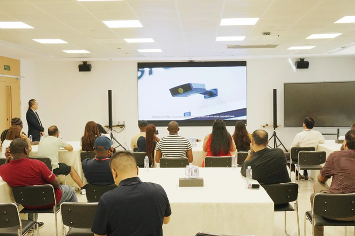 在視源股份蘇州產(chǎn)業(yè)園,視源股份海外事業(yè)群客戶總監(jiān)何銀吉向參觀人員詳細介紹了公司的整體業(yè)務(wù)和發(fā)展情況。隨后,希沃江蘇子公司客戶顧問張文秀及其他同事,共同帶領(lǐng)參觀者體驗了希沃智慧黑板和交互智能平板。這些設(shè)備不僅能播放電子課件,而且主屏幕以及兩側(cè)的副屏幕都可用于書寫,滿足了教師日常上課的板書需求。其中,板書書寫功能和希沃白板的立體幾何工具贏得了參觀者的一致好評,使他們切實感受到了中國教育信息化實際應(yīng)用成果。