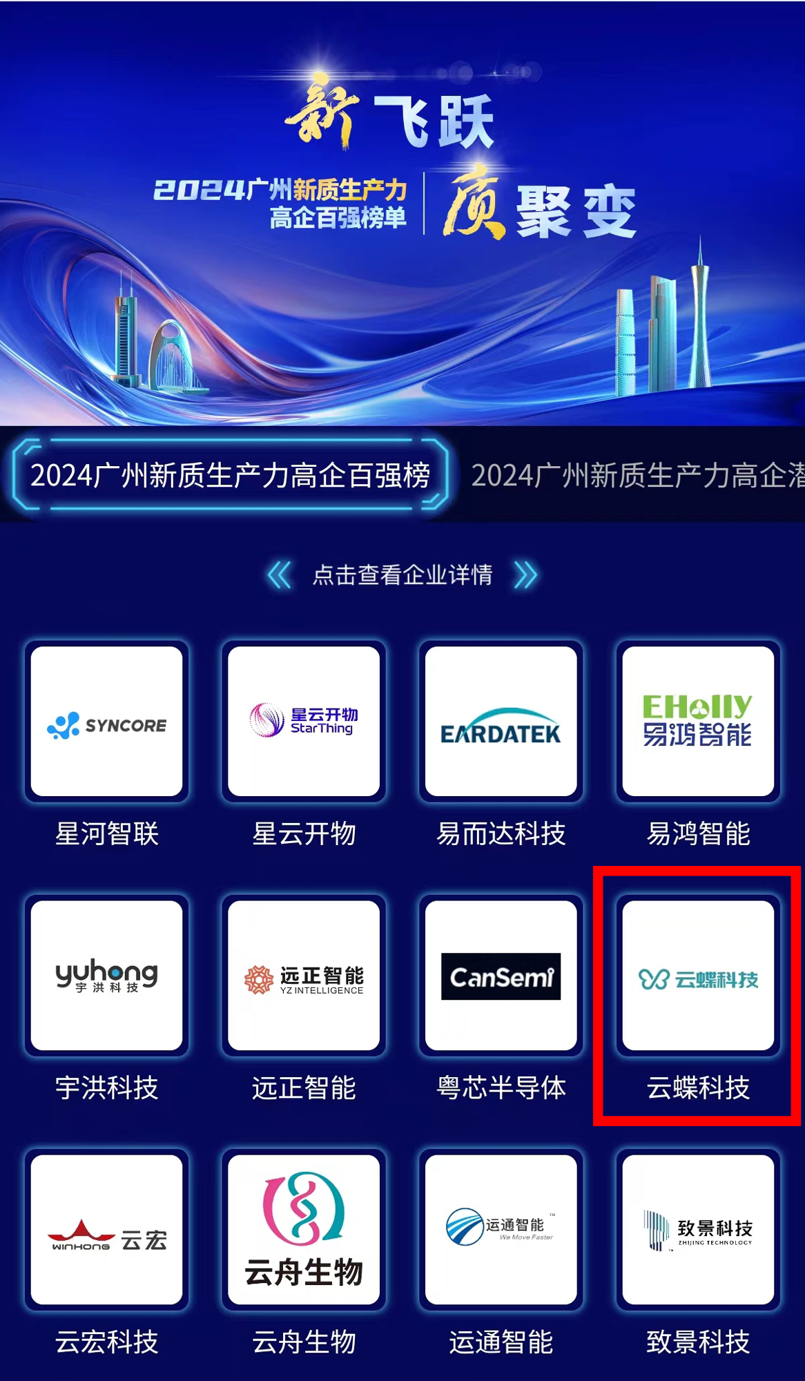 榮耀登榜!云蝶科技當(dāng)選2024廣州新質(zhì)生產(chǎn)力高企百?gòu)?qiáng)