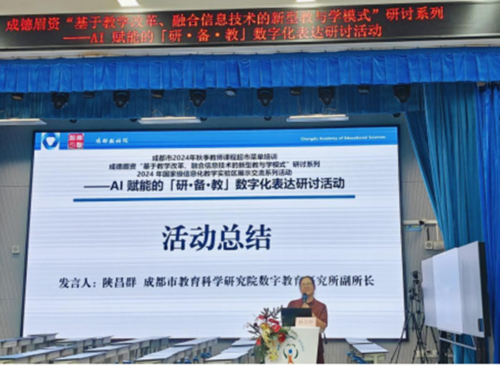 活動最后,成都教科院數(shù)字教育研究所副所長陜昌群充分肯定了本次研討活動的價值,鼓勵所有參會教育工作者為構(gòu)建新課堂、推動教育數(shù)字化轉(zhuǎn)型貢獻自己的力量,對老師們利用AI賦能教學(xué)創(chuàng)新提出了更高的期待。