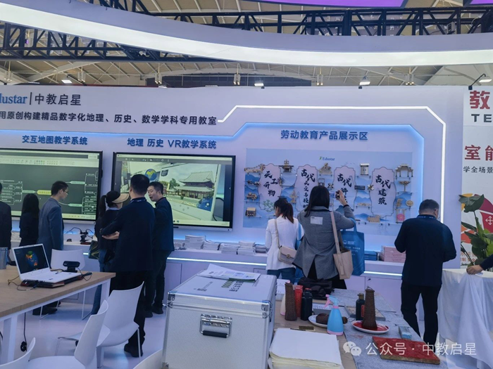 在這場教育創(chuàng)新的浪潮中,北京中教啟星科技有限公司攜原創(chuàng)研發(fā)的地理系列、歷史系列、勞動教育系列、VR教學系列產品精彩亮相本次教裝展,以其卓越的教育科技產品和前瞻的教育理念,吸引眾多觀展嘉賓、各地教師團隊、電教教裝領導、東南亞國際友人等蒞臨體驗,并給與充分肯定。