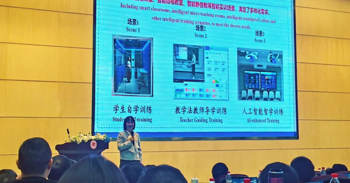 穆肅教授的報告通過華南師大與現(xiàn)代中慶共同組建的“師范生智能實訓關鍵技術與場景示范產(chǎn)學研基地”實踐,向參會嘉賓介紹了學校探索人工智能賦能師范生教學技能高質(zhì)量培養(yǎng)的途徑和模式。