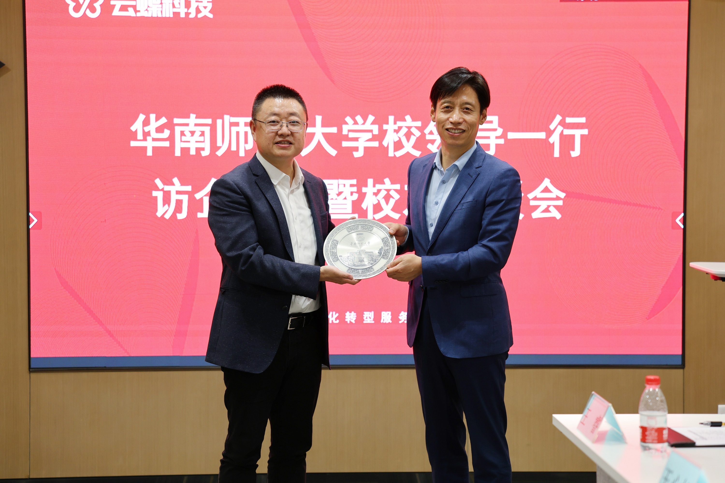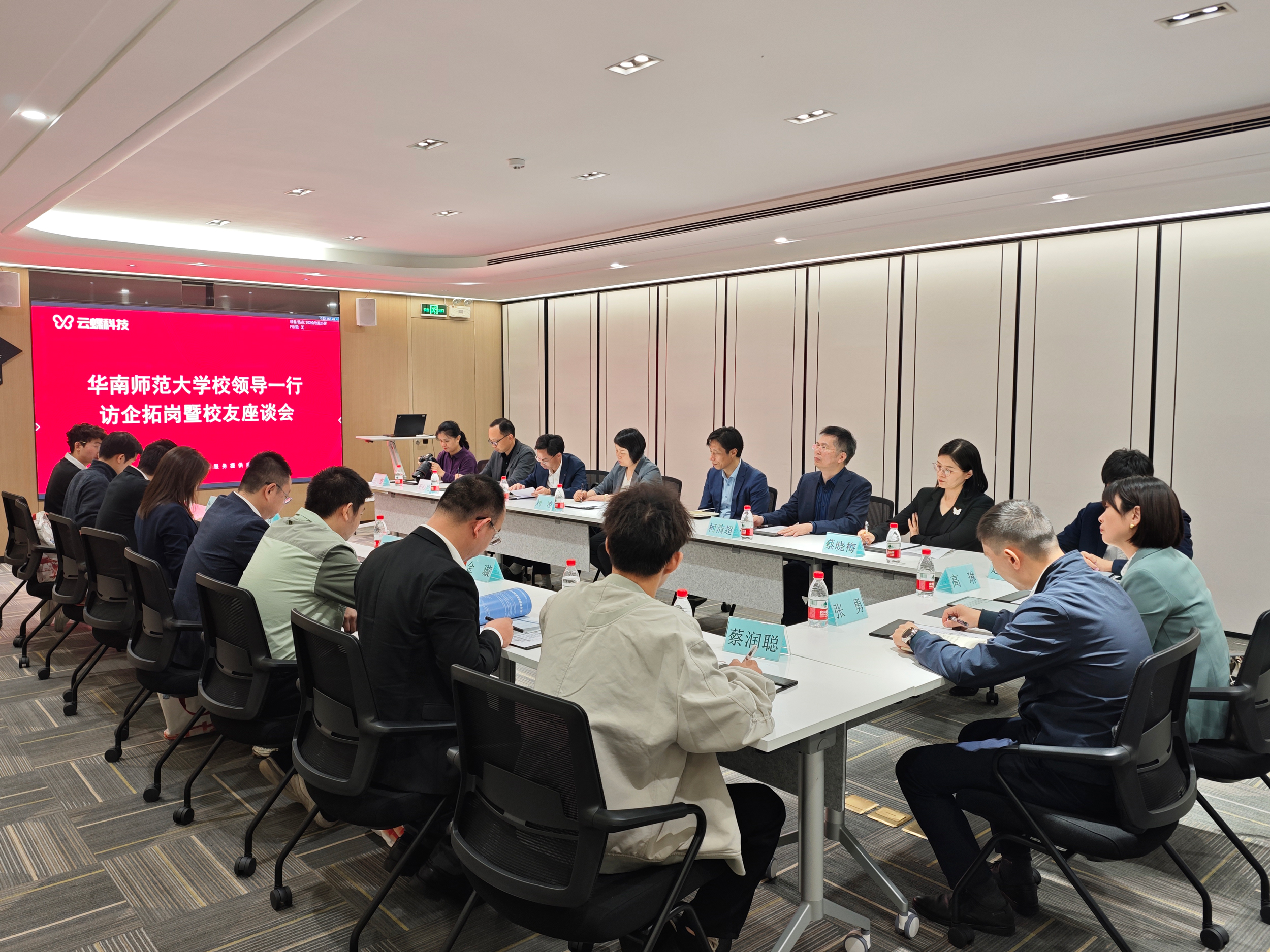 在隨后舉行的座談會上,雙方就如何深化校企合作、拓展就業(yè)崗位展開交流。楊校長表示,華南師范大學(xué)致力于培養(yǎng)具有創(chuàng)新精神和實踐能力的人才,云蝶科技等校友企業(yè)的成功經(jīng)驗具有示范作用。他強調(diào),今后學(xué)校將通過校外辦學(xué)、訪企拓崗等方式加強與校友企業(yè)的聯(lián)系,與校友企業(yè)共同成長。