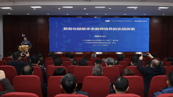 數(shù)字化是開辟教育新賽道、發(fā)展教育新動能的重要突破口。廣州視睿電子科技有限公司(希沃)副總裁、廣東省杏壇智慧教育創(chuàng)新研究院院長魏振水參加會議,分享希沃以數(shù)智化賦能未來教師培養(yǎng)的實(shí)踐探索。