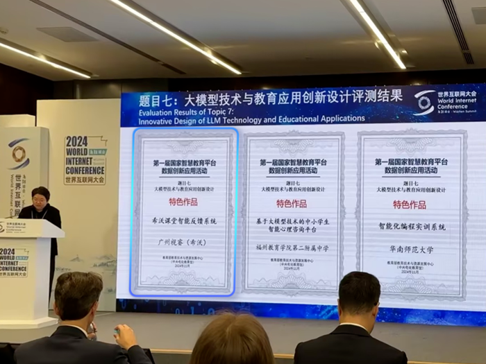 魏振水提到,數(shù)智技術(shù)正在全面賦能高質(zhì)量教育。包括對教師教學(xué)與學(xué)生學(xué)習(xí)、教師發(fā)展、教育管理與決策等方向的支持。近年來,希沃積極響應(yīng)國家“人工智能+”行動,開發(fā)seewo AI并專注于探索其應(yīng)用落地。據(jù)悉,2023年10月,希沃推出應(yīng)用在教育領(lǐng)域的專用大模型——希沃教學(xué)大模型。并在今年10月發(fā)布希沃教學(xué)大模型2.0.賦能全系列AI產(chǎn)品及方案。搭載希沃教學(xué)大模型的希沃課堂智能反饋系統(tǒng)入選2024年世界互聯(lián)網(wǎng)大會《國家智慧教育平臺數(shù)據(jù)創(chuàng)新應(yīng)用活動》優(yōu)秀作品。