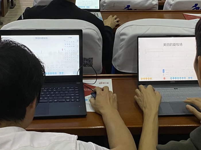 老師們跟隨指導(dǎo)仔細(xì)學(xué)習(xí)每一步操作,在屏幕上打出一個(gè)個(gè)音符,從生疏到熟練,這種實(shí)操教學(xué)讓老師們更好地掌握了軟件的操作技巧,以便融入日常教學(xué)。