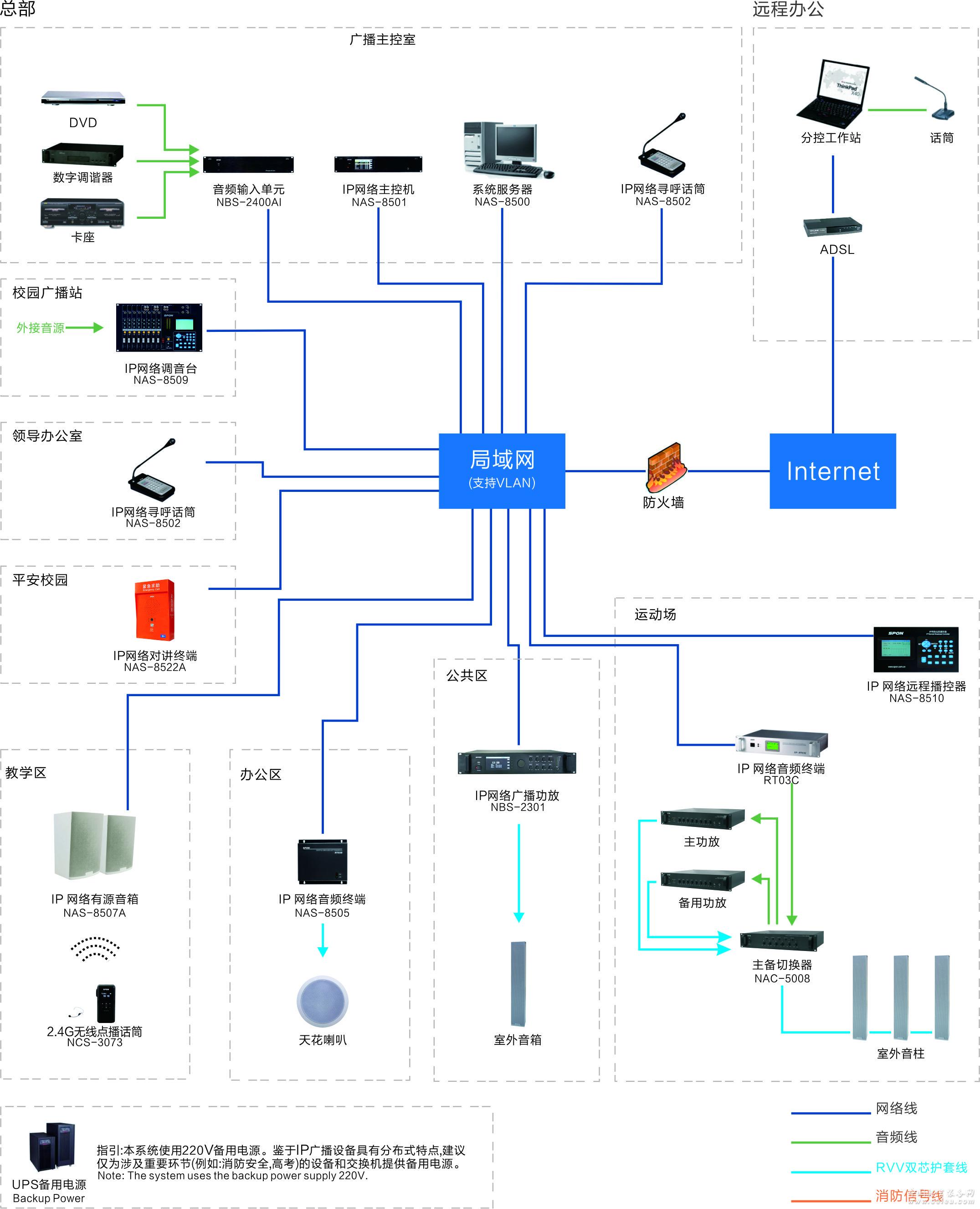 產(chǎn)品詳細介紹世邦IP網(wǎng)絡廣播系統(tǒng)采用當今世界廣泛使用的TCP/IP網(wǎng)絡技術, 將音頻信號以標準IP包形式在局域網(wǎng)和廣域網(wǎng)上進行傳送,是一套純數(shù)字傳輸?shù)碾p向音頻擴聲系統(tǒng)。徹底解決了傳統(tǒng)廣播系統(tǒng)存在的音質不佳,維護管理復雜,缺乏互動性等問題。該系統(tǒng)設備使用簡單,安裝擴展方便,只需將音頻終端接入計算機網(wǎng)絡即可構成功能強大的數(shù)字化廣播系統(tǒng),每個接入點無需單獨布線,真正實現(xiàn)計算機網(wǎng)絡、數(shù)字視頻監(jiān)控、公共廣播的多網(wǎng)合一。 IP網(wǎng)絡廣播系統(tǒng)是完全不同于傳統(tǒng)廣播系統(tǒng)、調頻尋址廣播系統(tǒng)和數(shù)控廣播系統(tǒng)的產(chǎn)品。因建立在通用網(wǎng)絡平臺上,并融入世邦自有知識產(chǎn)權的數(shù)字音頻技術,多方面體現(xiàn)了顯著的優(yōu)越性: 功能方面:可獨立控制每個終端播放不同的內容(如:局域網(wǎng)內200個終端同時播放200路節(jié)目)。不僅能夠完全實現(xiàn)傳統(tǒng)廣播系統(tǒng)的功能(如:定時打鈴、分區(qū)播放、消防報警等),而且還具備終端自由點播、終端間雙向對講等功能; 傳輸方面:音頻傳輸距離無限延伸,可運行在跨網(wǎng)關的局域網(wǎng)和Internet網(wǎng)上,支持大范圍的重要型應用,從主校區(qū)到分校區(qū)集中控制廣播,從公司總部到各個地區(qū)分部的同聲廣播,實現(xiàn)快速、可靠的信息溝通。每路節(jié)目占用帶寬僅0.1Mbps; 音質方面:終端輸出音質接近CD級(44.1K, 16bit), 滿足對聲音質量要求較高的場合,如高考、大學四六級考試聽力播放,及教室里的日常外語聽力訓練,每個發(fā)音都可以清晰可辨,不再為含混不清的聲音所困擾; 可靠性方面:服務器(Windows操作系統(tǒng))與IP網(wǎng)絡主控機(嵌入式操作系統(tǒng))提供雙重保險,如一方故障,另一方可接管所有終端,確保系統(tǒng)基本功能正常運行。主控機與終端均采用工業(yè)級芯片,全天24小時工作,完全不受病毒侵擾。借助于成熟的以太網(wǎng)絡硬件,整套系統(tǒng)無需額外的線路維護。 |