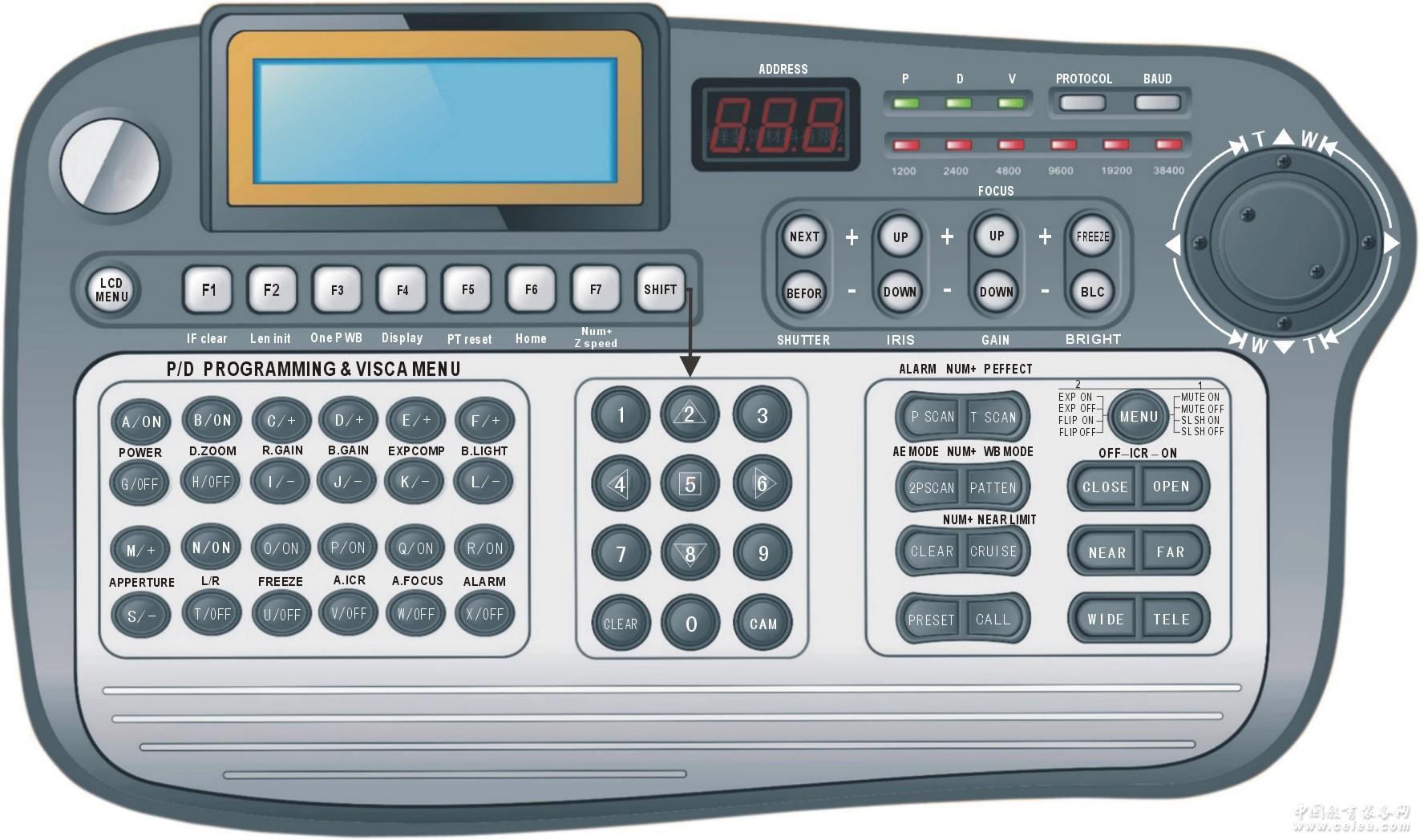 產(chǎn)品詳細(xì)介紹功能特點: ◆液晶顯示,直觀、方便、易懂、信息量大等優(yōu)點。 ◆比例搖桿操作高速球和云臺,手感好,控制靈活,使用方便。 ◆鍵盤鎖定功能可避免其他非授權(quán)用戶操作鍵盤,安全性高。 ◆提供 RS422/RS485控制輸出信號,同時提供標(biāo)準(zhǔn)的RS232控制信號,方便近距離和遠(yuǎn)程 ◆設(shè)備可編程控制 ◆控制模式:主控、分控 ◆最大可接入分控數(shù):16 ◆最大可控制攝像機數(shù):254臺(SONY D70P最多串聯(lián)7臺,是有SONY自身技術(shù)決定的) ◆最大可控制監(jiān)視器數(shù):64 ◆最大可控制解碼器數(shù):1024 ◆通訊波特率:1200 bps~9600 bps ◆協(xié)議: PELCO_D、PELCO_P協(xié)議 ,SONY VISCA ◆數(shù)據(jù)格式:N,8,1 ◆供電電壓:AC/DC 9V~12V ◆功率: 5W |