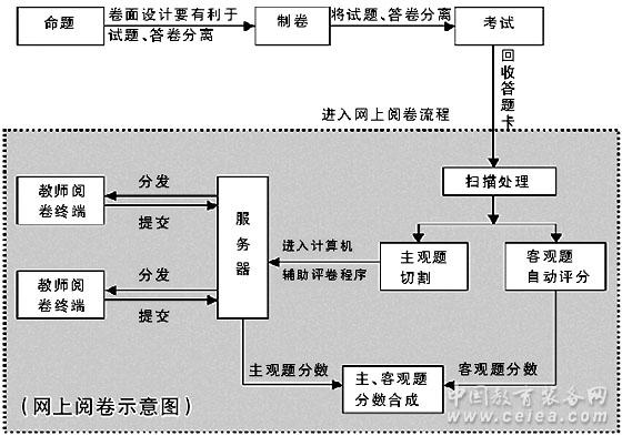 產(chǎn)品詳細(xì)介紹網(wǎng)上閱卷又稱網(wǎng)絡(luò)閱卷、計(jì)算機(jī)閱卷或無(wú)紙化閱卷。它是基于計(jì)算機(jī)網(wǎng)絡(luò)環(huán)境,運(yùn)用圖片掃描、模式識(shí)別、圖像處理等技術(shù)對(duì)考試答題卡進(jìn)行電子化處理的過(guò)程。此閱卷方式將客觀題與主觀題都在一張答題卡上作答,通過(guò)高速文檔掃描儀掃描存儲(chǔ)到計(jì)算機(jī)內(nèi),得到清晰準(zhǔn)確的圖像文件后,客觀題由計(jì)算機(jī)自動(dòng)閱卷,主觀題無(wú)需再翻卷批閱,而是由老師通過(guò)計(jì)算機(jī)進(jìn)行閱卷,閱卷完畢后由計(jì)算機(jī)自動(dòng)匯總分?jǐn)?shù),并可隨機(jī)生成幾十種成績(jī)分析統(tǒng)計(jì)報(bào)表。網(wǎng)上閱卷方式公平公正、方便快捷,大大提高工作效率,降低教師的工作強(qiáng)度,對(duì)減少和有效控制評(píng)卷誤差、監(jiān)控評(píng)卷質(zhì)量起到了積極作用,使考試管理工作實(shí)現(xiàn)了真正意義上的全面信息化、自動(dòng)化、網(wǎng)絡(luò)化。