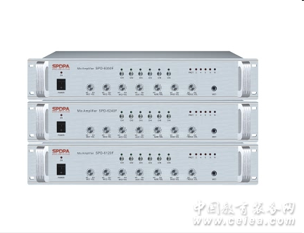 產(chǎn)品詳細(xì)介紹型號 SPD-6120F SPD-6240F SPD-350F 額定輸出功率 120W 240W 350W 輸出方式 CH1~CH6(0V,100V)定壓輸出;70V、100V定壓輸出;定阻(4Ω~16Ω)輸出 輸入 MIC1.2.3:600Ω2.0mv,AUX1,2: 15KΩ150mv不平衡 總諧波失真 小于0.1%at 1KHz,1/3 rated power 電源 ~220V/50HZ 尺寸 482X448X88mm 凈重 13 15 17 |