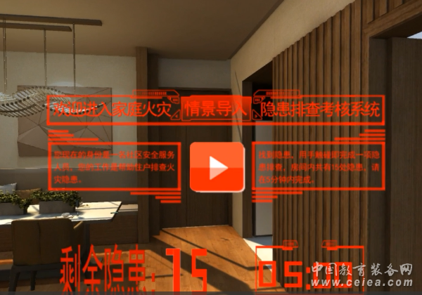 三﹑場景設(shè)定 場景:普通家庭環(huán)境 身份設(shè)定:社區(qū)安全服務(wù)人員 任務(wù)設(shè)定:幫助小區(qū)住戶排查家中的消防安全隱患點(diǎn) 任務(wù)要求:房間內(nèi)共有15處隱患,需要在5分鐘內(nèi)完成