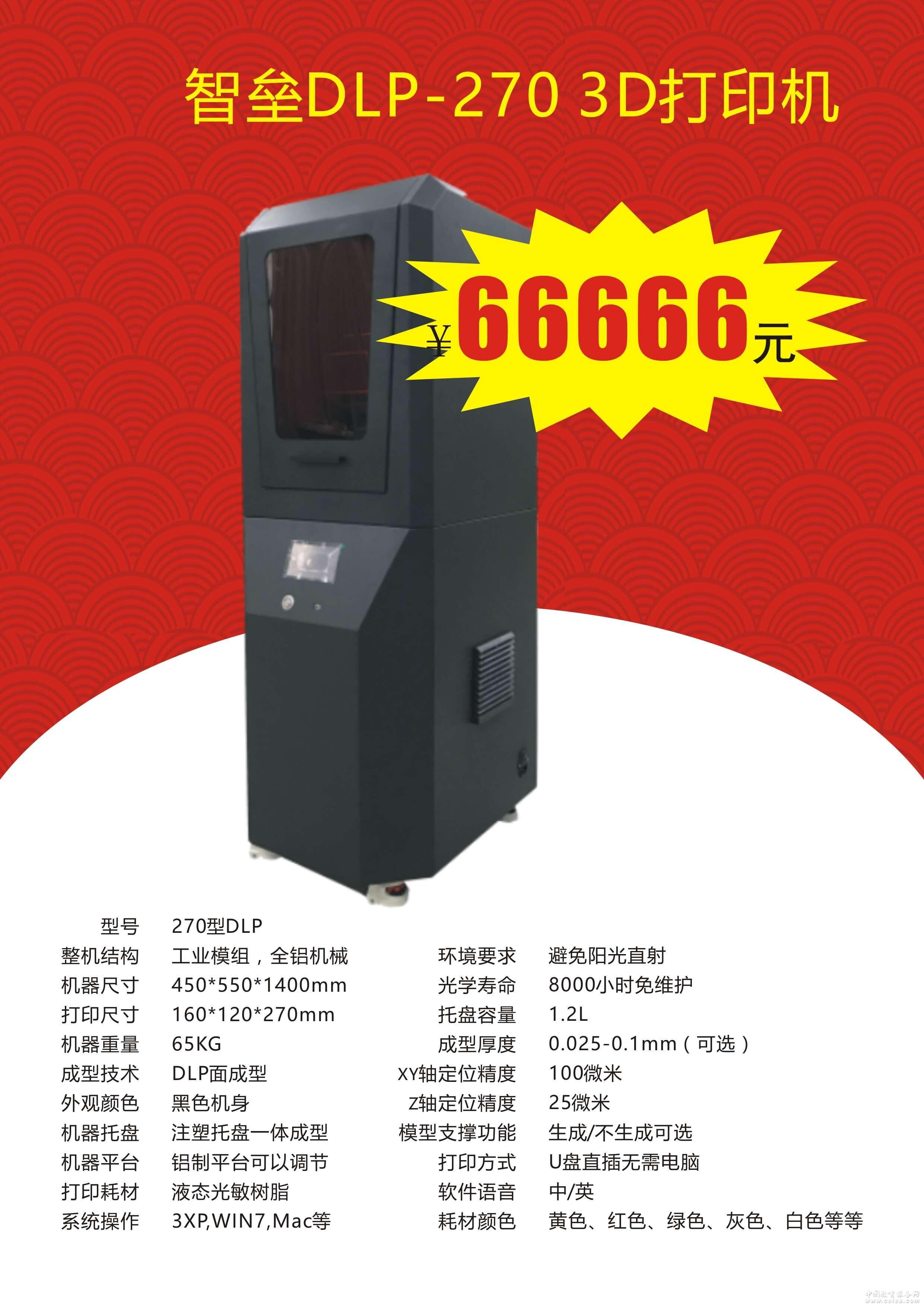 產(chǎn)品詳細(xì)介紹針對目前的市場發(fā)展,武漢智壘推出了實用型DLP 3D打印機(jī)。這款機(jī)型的最大優(yōu)勢是,在7萬元以內(nèi)的光固化設(shè)備中,國內(nèi)外目前還沒有同類產(chǎn)品。成型尺寸160*120*270mm,價格66666元(含稅)。這款設(shè)備采用工業(yè)模具,全鋁機(jī)械。57伺服步進(jìn)帶編碼器。U盤直插,無需電腦。注塑托盤一體成型,長壽命。一款真正的實用型準(zhǔn)工業(yè)級光固化設(shè)備。 武漢智壘DLP 3D打印機(jī),全面實現(xiàn)量產(chǎn)化。先進(jìn)的鋁合金加不銹鋼平臺,可調(diào)節(jié)水平。終身免費(fèi)升級,二年質(zhì)保。 用戶點評: 武漢智壘DLP是一款軍工標(biāo)準(zhǔn)制造的全金屬結(jié)構(gòu) 3D打印機(jī),成型尺寸大。適用于企業(yè)、學(xué)校、創(chuàng)客、個人打印工作室等等。直接打破了原來DLP大尺寸工業(yè)機(jī)設(shè)備動不動就需要20萬以上的固有價格體系。實現(xiàn)了人人都能用,并且人人都用的起的光固化大尺寸設(shè)備。 智壘電子科技(武漢)有限公司 [聯(lián)系電話] 027-87717810 4000877339 [公司網(wǎng)站] www.tmtctw.net