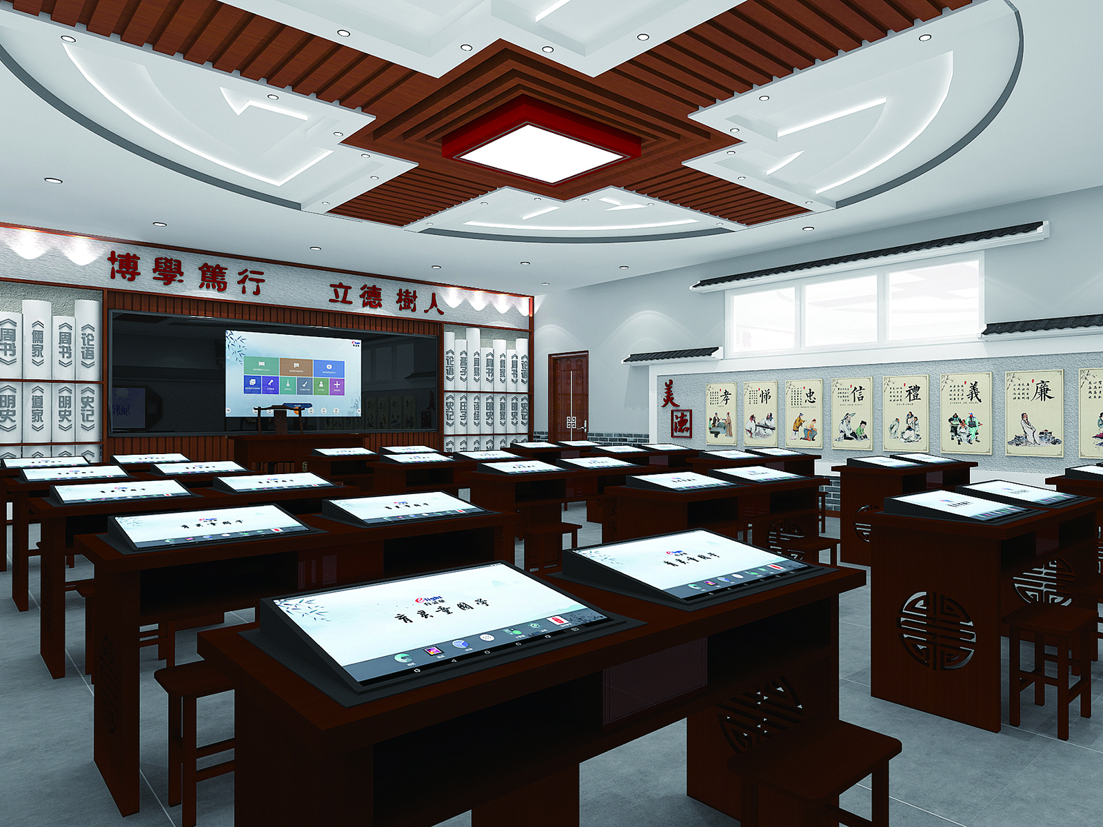 國學(xué)智慧教室是指用現(xiàn)代數(shù)字技術(shù)和國學(xué)教育系統(tǒng)軟件資源在中小學(xué)校園中營造具有國學(xué)特色的,便于全面開展國學(xué)教育的專用教室。它以國學(xué)課堂軟件系統(tǒng)和國藝交互體驗(yàn)系統(tǒng)為核心,通過數(shù)字化技術(shù)的構(gòu)建和傳統(tǒng)氛圍的塑造,激發(fā)師生學(xué)習(xí)國學(xué)的興趣,提升國學(xué)教學(xué)的科技含量,從而為學(xué)校開展中華優(yōu)秀傳統(tǒng)文化教育提供一個(gè)便利的平臺(tái),開創(chuàng)信息化時(shí)代國學(xué)經(jīng)典教育的新紀(jì)元。