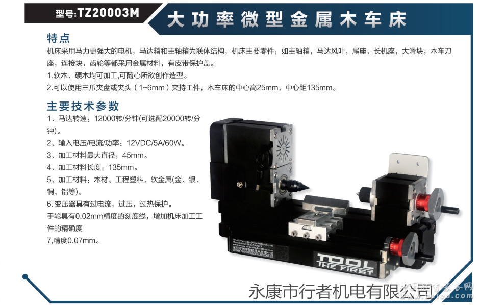 產(chǎn)品詳細(xì)介紹木車(chē)床特點(diǎn):機(jī)床采用馬力更強(qiáng)大的電機(jī),馬達(dá)箱和主軸箱為聯(lián)體結(jié)構(gòu),機(jī)床主要零件:如主軸箱,馬達(dá)風(fēng)葉,尾座,長(zhǎng)機(jī)座,大滑塊,木車(chē)刀座,連接塊,齒輪等都采用金屬材料,有皮帶保護(hù)蓋。 1.軟木、硬木均可加工,可隨心所欲創(chuàng)作造型。 2.可以使用三爪夾盤(pán)或夾頭(1~6mm)夾持工件,木車(chē)床的中心高25mm,中心距135mm。 技術(shù)參數(shù): 1、馬達(dá)轉(zhuǎn)速:12000轉(zhuǎn)/分鐘(可選配20000轉(zhuǎn)/分鐘)。 2、輸入電壓/電流/功率:12VDC/5A/60W。 3、加工材料最大直徑:45mm。 4、加工材料長(zhǎng)度:135mm。 5、加工材料:木材、工程塑料、軟金屬(金、銀、銅、鋁等)。 6. 變壓器具有過(guò)電流,過(guò)壓,過(guò)熱保護(hù)。 手輪具有0.02mm精度的刻度線,增加機(jī)床加工工件的精確度 7,精度0.07mm。 |