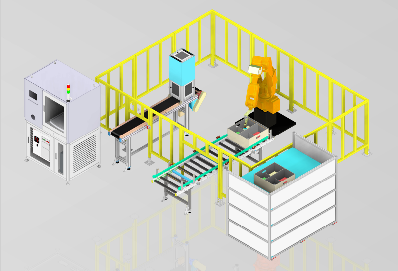 1、提供機(jī)器人分揀裝箱三維布局圖