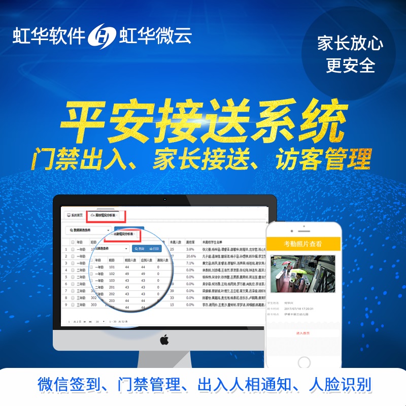 產品詳細介紹系統(tǒng)可設定多個通行權限,全面管控學生的出入時間、地點,刷卡同時推送抓拍圖至家長手機,實時掌控孩子的出入、異常情況。通過門禁通道,有效控制校內外人員的進出,實時查詢所有記錄和拍照記錄,明確學生在校內還是在校外,掌握學生的行蹤記錄。 系統(tǒng)告別紙質請假條的各種繁瑣流程,對學生請假規(guī)范化處理。 對于請假的學生開放自行出入權限,保安無需再次詢問,大大簡化學生請假流程和安保的工作,杜絕學生生臨摹老師簽字外出游玩造成不良影響,學生與學校責任分明,保障校園安全。 被訪人手機登記預約,到訪信息提醒; 系統(tǒng)查詢確認,授權臨時卡; 訪問結束,系統(tǒng)自動記錄來訪信息,如進出時間,被訪人姓名、號碼等 家長到校簽到,信息推送至 班主任;同步顯示至班級大屏幕 班主任通知學生離開教室后,發(fā)送信息告知家長; 委托他人接送時,保安有證可查,避免錯接等事故的發(fā)生; |