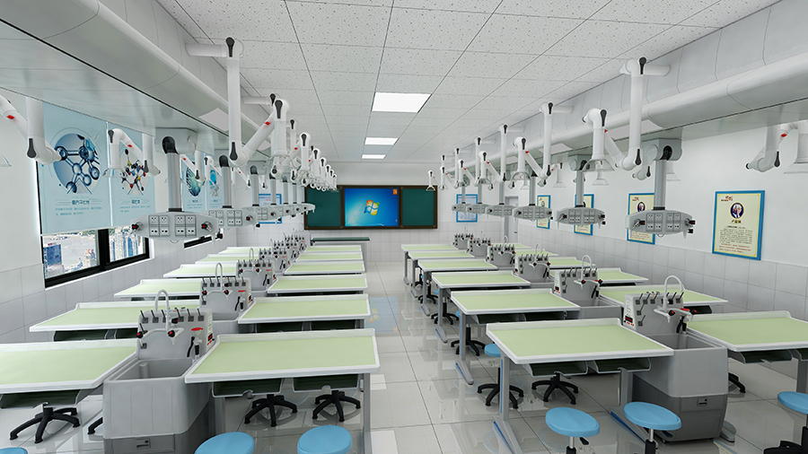 東方Sky-Docking實驗室基礎設施包括模塊化的水、電、氣、網(wǎng)絡、通風管道等艙體設施和集成式電動搖臂系統(tǒng)所組成的吊頂單元;師生實驗桌椅和多功能移動水槽等組成的地面單元;借助中央智能控制系統(tǒng),可實現(xiàn)對Sky-Docking系統(tǒng)的智能集中控制,滿足師生安全、高效管控各類試驗設備,并充分拓展實驗室功能應用。三者結(jié)合,構(gòu)成完整的理化生實驗室的主體系統(tǒng)。