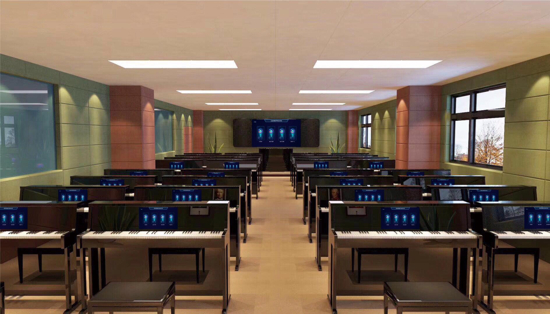 ★五線譜: 五線譜模塊是智慧鋼琴教學(xué)系統(tǒng)的主要學(xué)習(xí)模塊,該模塊通過師生同步授課和學(xué)生自行練習(xí)進行功能展示。師生同步授課時,教師控制課件,編輯五線譜,為學(xué)生下發(fā)任務(wù),查看學(xué)生練琴分?jǐn)?shù),并通過控制臺連接學(xué)生音頻、視頻,實現(xiàn)實時監(jiān)聽學(xué)生得彈奏情況,連接視頻可實時查看學(xué)生得手型指法是否正確。學(xué)生自主練琴時自己選擇彈奏模式,拆分五線譜,進行練習(xí)。 五線譜模塊主要功能有: AB段:點擊進入AB段選擇狀態(tài)后,以小節(jié)為單位,選取起始小節(jié)組成一段,該段單獨顯示進行彈奏; 左右手:默認(rèn)顯示雙手彈奏樂譜,點擊切換單手,右手狀態(tài)時左手低音譜號五線譜部分遮蓋,彈奏時不記分,反之右手遮蓋,不記分;左右手和AB段可互相關(guān)聯(lián),可在選擇了AB段后的基礎(chǔ)上選擇左右手; 調(diào)速:五線譜按原曲速度彈奏,可加減速度,速度分三個檔位:原速、低速、高速,點擊加減按鈕可調(diào)節(jié)速度檔位;調(diào)速功能和節(jié)拍器關(guān)聯(lián); 節(jié)拍器:打開可開啟節(jié)拍器聲音,輔助彈奏練習(xí); 播放:點擊可按原速播放該五線譜,播放時紅線跟隨節(jié)奏自動滾動,播放過后的部分有顏色提示; 演奏:點擊演奏按鈕后,3秒倒計時后指示線按照樂譜原速度自動滾動播放,播放時需按照音高和節(jié)奏要求進行彈奏。音高和節(jié)奏均彈奏正確時該音符記分,音高正確節(jié)奏錯誤時該音符記一半分?jǐn)?shù)。彈奏結(jié)束后計算該樂譜彈奏得分; 練習(xí):每彈奏一次鋼琴琴鍵,指示線向后滾動一次,沒有節(jié)奏時值計算,只判斷音高是否正確。彈奏正確有正確顏色渲染提示,彈奏錯誤有錯誤顏色渲染提示。彈奏結(jié)束時記分; 試奏:只有鋼琴鍵盤彈奏正確時指示線才向下一組音符滾動,彈奏錯誤時指示線不會滾動,試奏彈奏模式不記分; 任務(wù):教師選擇彈奏模式和拆分五線譜之后,點擊任務(wù),選擇任務(wù)遍數(shù),將選擇的五線譜下發(fā)給學(xué)生進行彈奏,學(xué)生收到任務(wù)后進行彈奏,彈奏結(jié)束后顯示該次任務(wù)的分?jǐn)?shù),任務(wù)分?jǐn)?shù)記錄在成績報告中。任務(wù)彈奏時,教師可實時查看學(xué)生彈奏的分?jǐn)?shù); 控制臺:教師在上課時的五線譜課件中,選擇控制臺,展示該班級所有已在上課狀態(tài)時的學(xué)生,在音頻模塊,教師可選擇連接一個學(xué)生,監(jiān)聽該學(xué)生的彈奏音頻。在視頻模塊,教師可選擇最多四位學(xué)生的視頻影像進行投放,將學(xué)生的彈奏手型投放到大屏幕上。