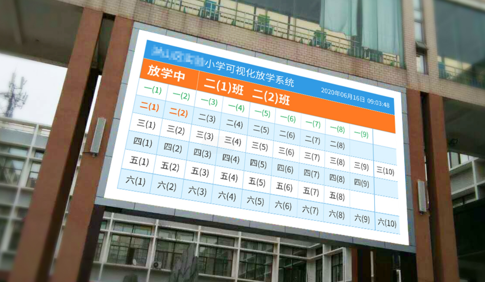 ○班級(jí)放學(xué)信息可視化 通過教育云盒接學(xué)校已有的各類單雙色及彩屏,在放學(xué)時(shí)段,可面向校外家長在LED大屏上滾動(dòng)播放全校各班級(jí)的實(shí)時(shí)放學(xué)信息;