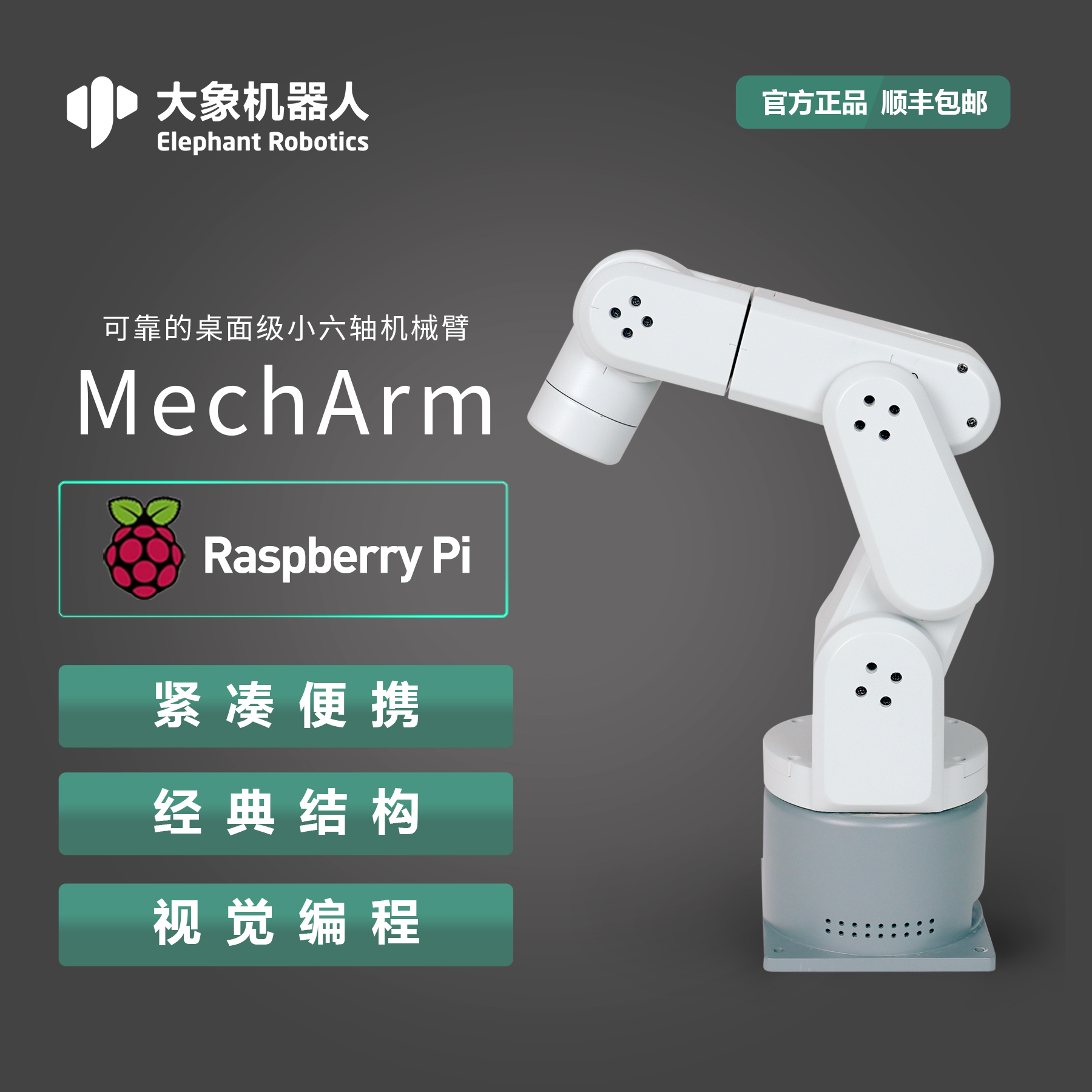 mechArm Pi 270隸屬于大象機(jī)器人"mechArm"系列小六軸機(jī)械臂,采用樹莓派微處理器,支持ROS仿真模擬軟件,是大象機(jī)器人面向創(chuàng)客創(chuàng)新和機(jī)器人產(chǎn)學(xué)研服務(wù)推出的仿工業(yè)構(gòu)型小六軸機(jī)械臂。