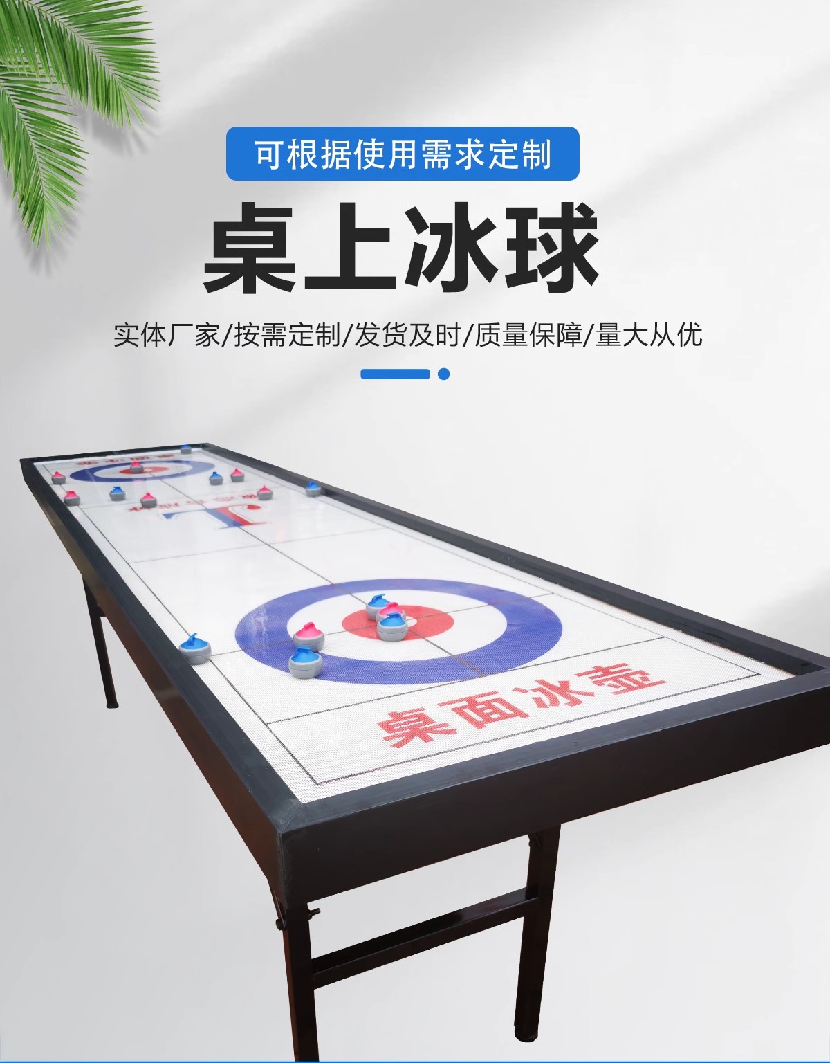 產(chǎn)品詳細介紹 1.標準球道尺寸:2350mmx530mm, 公差為土5mm。 2.配 16 個冰壺球,球由塑料外殼和鋼球組合而成,主體為扁球體。 球的頂部有一小把手,冰壺球的投影直徑為38mm土 2mm,冰壺球的整體高度為31mm土2mm,每個球的重量 為72g。 3.標準桌面尺寸:2450mm(長)x610mm(寬)x720公差為土5mm。 4.桌邊采用聚乙烯塑料包邊,包邊總厚度70mm公差2mm。 5.桌邊有20mm公差2mm防撞圍擋,防止冰壺落地。