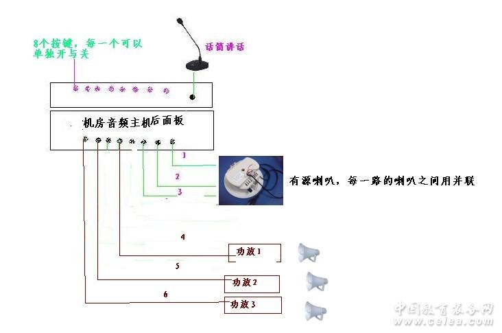 廣播話筒選用臺(tái)式鵝頸話筒,操作方便,內(nèi)置鐘聲發(fā)生器,說(shuō)話前可發(fā)出清脆的鐘聲,以提醒聽眾注意,主要供廣播通知時(shí)使用。