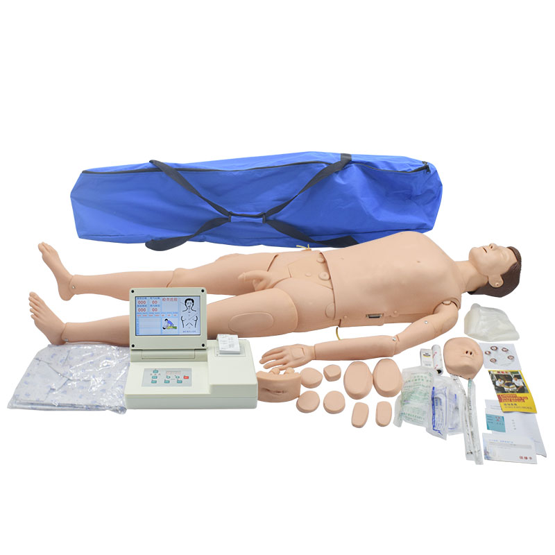 產(chǎn)品詳細(xì)介紹產(chǎn)品名稱:高級多功能護(hù)理急救訓(xùn)練模擬人(心肺復(fù)蘇、男女導(dǎo)尿、手臂靜脈穿刺) 型號:ZH/CPR690B 產(chǎn)品介紹: 高級多功能護(hù)理急救訓(xùn)練模擬人(心肺復(fù)蘇、男女導(dǎo)尿、手臂穿刺功能)是集國外同類產(chǎn)品之長處及公司科技人員的共同努力開發(fā)研制的高級多功能護(hù)理急救訓(xùn)練模擬人。模型包含以往心肺復(fù)蘇急救功能外還另增加了基礎(chǔ)護(hù)理技能功能的兩種組合為一體成人CPR訓(xùn)練模擬人,產(chǎn)品結(jié)合2015國際心肺復(fù)蘇操作指南標(biāo)準(zhǔn),突出CPR訓(xùn)練操作的輔助功能,以及可自行設(shè)定各項操作值,更加符合臨床和教學(xué)練習(xí)CPR操作要求。其核心模塊包括成人模型人、心肺復(fù)蘇顯示控制器,可進(jìn)行心肺復(fù)蘇的訓(xùn)練和考核。實現(xiàn)瞳孔變化、頸動脈搏動、氣道開放等心肺復(fù)蘇施救成功的必要條件。適用于社會心肺復(fù)蘇普及培訓(xùn)機(jī)構(gòu)與醫(yī)學(xué)院校、醫(yī)療衛(wèi)生系統(tǒng)、電力系統(tǒng)單位、工礦企業(yè)、交通部門單位等各種需要現(xiàn)場救生技術(shù)的單位部門進(jìn)行急救心肺復(fù)蘇培訓(xùn)使用。其造型更完美、功能更強(qiáng)大、操作更方便的領(lǐng)先產(chǎn)品。 執(zhí)行標(biāo)準(zhǔn):美國心臟學(xué)會(AHA)2015國際心肺復(fù)蘇(CPR)&心血管急救(ECC)指南標(biāo)準(zhǔn) 功能特點: ■ 采用8英寸彩屏顯示:模擬心臟搏動顯示、模擬心電圖顯示、鉅形圖表數(shù)據(jù)統(tǒng)計、CPR操作動畫顯示,使用說明中文文字顯示。 ■ 本模型為成年男性整體人,解剖特征明顯,手感真實,膚色統(tǒng)一,形態(tài)逼真,外形美觀,胸部體表標(biāo)志明顯(胸骨角、乳頭、劍突等),便于操作定位。 ■ 頭可左右搖擺,水平旋轉(zhuǎn)90度,有利于清除異物。 ■ 心肺復(fù)蘇術(shù):仰臥位,頭可后仰,便于清除呼吸道異物。 ■ 可進(jìn)行胸外按壓操作?蛇M(jìn)行打開氣道、可進(jìn)行口對口人工呼吸或者簡易呼吸器輔助呼吸,有效人工呼吸可見胸廓起伏。 ■ 模擬生命體征: 1)初始狀態(tài)時,模擬人瞳孔散大,頸動脈無搏動。 2)按壓過程中,模擬人頸動脈被動搏動,搏動頻率與按壓頻率一致。 3)搶救成功后,模擬人瞳孔恢復(fù)正常,頸動脈自主搏動。 ■ 瞳孔縮放和頸動脈搏動由開關(guān)可開啟和關(guān)閉。 ■ 可進(jìn)行人工呼吸和心臟胸外按壓?蛇M(jìn)行標(biāo)準(zhǔn)氣道開放,氣道指示燈變亮。 ■ 操作方式:CPR訓(xùn)練操作、考核操作(模式考核、實戰(zhàn)考核) 1)操作方式一:CPR訓(xùn)練,可進(jìn)行按壓和吹氣訓(xùn)練操作。 2)操作方式二:模式考核,在設(shè)定的時間內(nèi),根據(jù)2015CPR標(biāo)準(zhǔn),正確有效30次按壓及2次人工吹氣,30:2的比例,完成五個循環(huán)周期操作。 3)操作方式三:實戰(zhàn)考核,老師可自行設(shè)定操作時間范圍、操作標(biāo)準(zhǔn)、循環(huán)次數(shù)、操作頻率、按壓和吹氣的比例。 控制器顯示屏功能: ■ 電子監(jiān)測:電子指示燈顯示監(jiān)測氣道開放和按壓部位。人工呼吸和心臟胸外按壓的正確次數(shù)計數(shù)和錯誤次數(shù)計數(shù)。 ■ 語音提示:訓(xùn)練和考核全程中文語音提示,可開啟和關(guān)閉語音,調(diào)節(jié)音量。 ■ 文字提示:訓(xùn)練和考核全程中文文字提示。 ■ 動態(tài)條碼指示燈顯示吹氣量:正確的吹氣量為500~600ml-1000ml: 1)吹氣量過少時,條形碼為黃色。 2)吹氣量合適時,條形碼為綠色。 3)吹氣量過大時,條形碼為紅色。 4)吹入的潮氣量過快或超大,造成氣體進(jìn)入胃部指示燈顯示;數(shù)碼計數(shù)顯示;錯誤語言提示; ■ 動態(tài)條形碼指示燈顯示按壓深度,正確的按壓深度5-6cm: 1)按壓深度不夠時(小于5cm),條形碼為黃色。 2)按壓深度正確時(5-6cm區(qū)域),條形碼為綠色。 3)按壓深度過深時(大于6cm),條形碼為紅色。 ■ 可自行設(shè)定操作時間,以秒為單位。 ■ 操作頻率:2015標(biāo)準(zhǔn)為至少100次/分;也可自行設(shè)定數(shù)值。 ■ 電源狀態(tài):采用220V電源,經(jīng)過穩(wěn)壓器穩(wěn)壓后輸出電源12V。 基礎(chǔ)護(hù)理操作: ■ 手臂靜脈穿刺、注射、輸液 ■ 三角肌皮下注射 ■ 股外側(cè)肌注射 ■ 灌腸法 ■ 女性導(dǎo)尿術(shù) ■ 男性導(dǎo)尿術(shù) ■ 女性膀胱沖洗 ■ 男性膀胱沖洗 ■ 臀部肌肉注射 ■ 整體護(hù)理:擦洗、穿換衣服 打印機(jī)功能: 操作結(jié)束后打印操作過程。成績單內(nèi)容涵蓋操作方式、意識判斷、急救呼吸、脈搏檢查、檢查呼吸、清除異物、操作頻率、按壓與吹氣比例、循環(huán)次數(shù)、每個循環(huán)操作中按壓和吹氣的次數(shù)、按壓正確/錯誤次數(shù)、按壓錯誤的原因和次數(shù)、吹氣正確/錯誤的原因和次數(shù)、吹氣錯誤的原因、設(shè)定時間、操作時間和考核評定。 材料特點: 模擬人面皮膚、頸皮膚、胸皮膚、頭發(fā),采用進(jìn)口熱塑彈性體混合膠材料,由不銹鋼模具、經(jīng)注塑機(jī)高溫注壓而成,具有解剖標(biāo)志準(zhǔn)確、手感真實、膚色統(tǒng)一、形態(tài)逼真、外形美觀、經(jīng)久耐用、消毒清洗不變形,拆裝更換方便等特點,其材料達(dá)到國外同等水平。 標(biāo)準(zhǔn)套配置: ■ 高級復(fù)蘇全身人體模型一具; ■