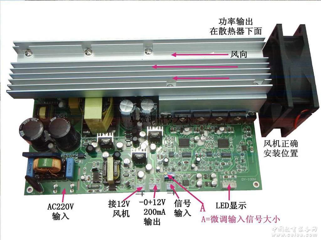 輸入、輸出接口: 工作狀態(tài)LED顯示接口 用于顯示工作、信號、自動保護狀態(tài)指示。 12V200mA風(fēng)機電源輸出 用于外接散熱風(fēng)機 + - 12V 200mA輸出 用于您或許需要配套的前級板電源. 智能風(fēng)機控制: 當(dāng)散熱器溫度上升到50度時,風(fēng)機開始工作。低于50度時,風(fēng)機停止工作。