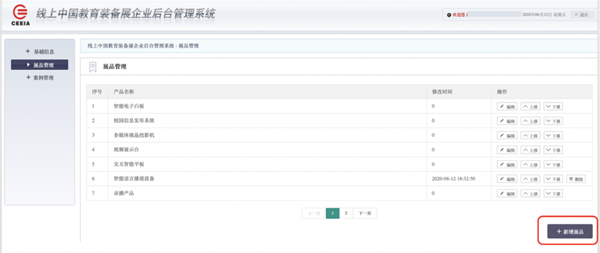 2.新增參展產(chǎn)品:本屆展示會(huì)參展企業(yè),除上報(bào)參展產(chǎn)品外,還可在本系統(tǒng)中新增產(chǎn)品的信息和數(shù)據(jù)。在【展品管理】頁,點(diǎn)擊【新增展品】,按要求填寫相應(yīng)內(nèi)容。新增的產(chǎn)品只在“線上展”展示,不收錄到《第78屆中國(guó)教育裝備展示會(huì)參展產(chǎn)品名錄》。