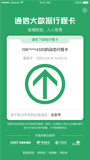 (2)打開“通信行程卡”app,輸入手機(jī)號(hào),獲取“通信大數(shù)據(jù)行程卡”狀態(tài)。