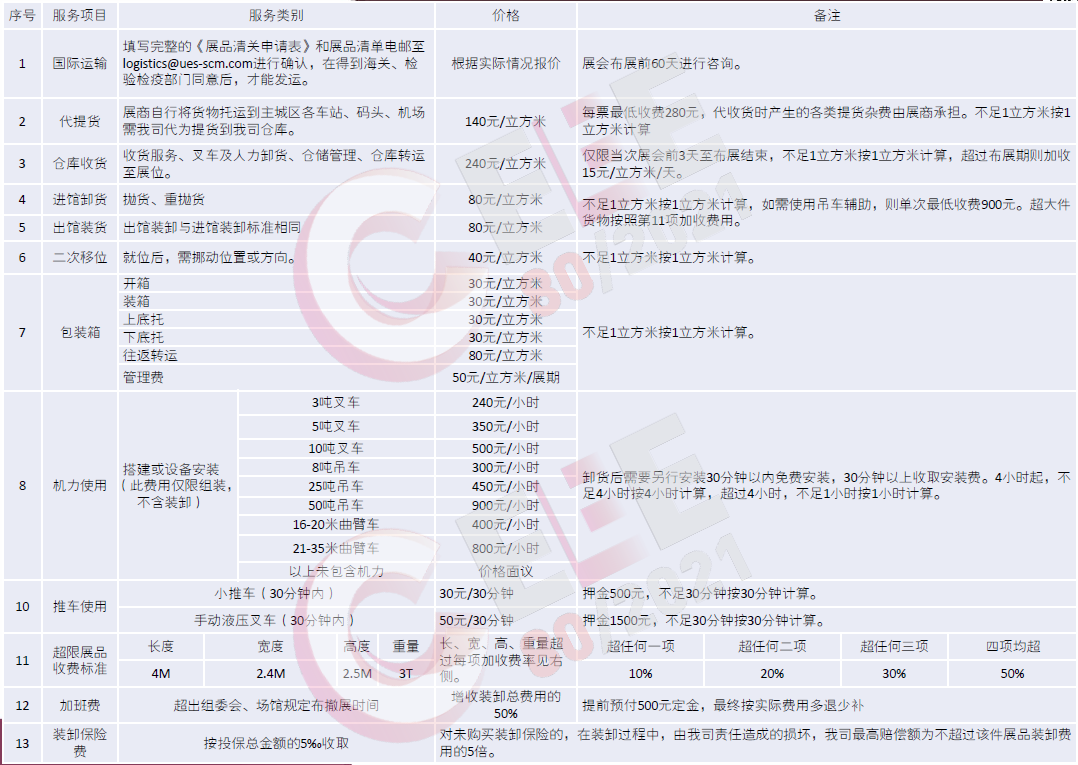 4、為保障現(xiàn)場裝卸安全有序管理物流秩序,請使用大會指定主場物流服務(wù)商提供的裝卸服務(wù)工具。禁止外帶或自帶未經(jīng)主場物流服務(wù)商備案的裝卸工具。