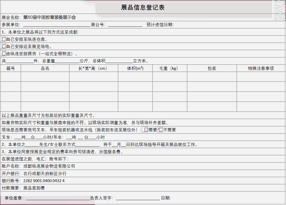 2、所有參展物品需在布展前三天運(yùn)到成都主城區(qū)。